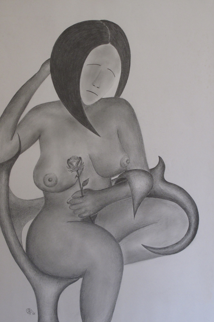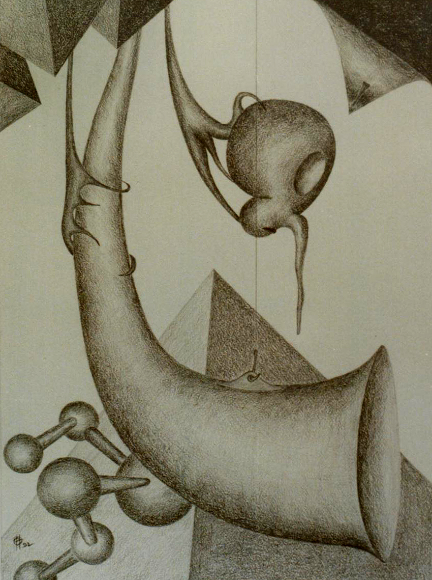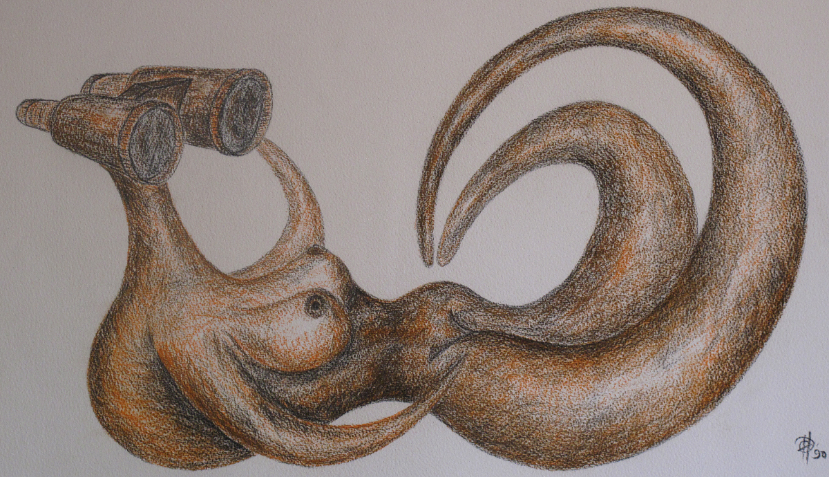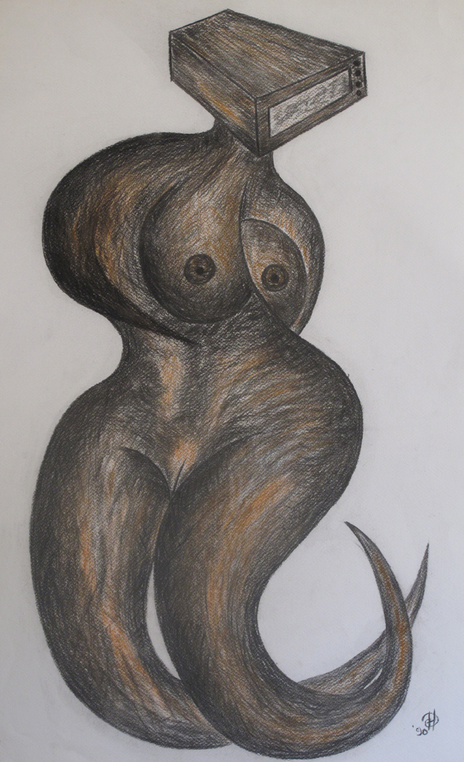 Drawings are immediate and embrace the proprioceptive action between brain and fingers. The more technology infiltrates our lives the more it pushes me away from my techno-surrealist computer art towards the joy of using pencil and paper. AI which I've never used is the final dumbing-down scenario of human-kind. Welcome to Huxley's Epsilon World. |